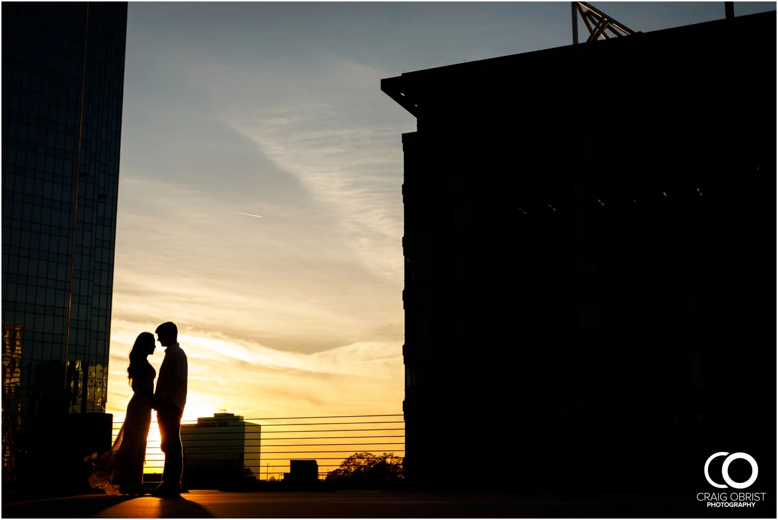 I felt awful because we had to schedule their e-session three times because the rain decided to join us on those days. Well, as they say... third times a charm because it was a beautiful day! The sky was blue, the clouds were fluffy, there was no sign of rain at all, and it was peak of spring so everything was so freshly green.... It was a bit warm when we first started, but we fought through it and as soon as the sun set, the temperature was perfect! We took a few shots in front of Philips Arena because that's where their love story began. I feel like I can hear some of you guys saying, "aw....". I know, that's what I said too. :) From there, we went to Lenox Park and as we were heading to the next location from there, James realized he forgot to bring one of his shirts. DOH! I think all of our brains started running around trying to figure out what we could do to fix the situation. Craig offered the shirt he was wearing, but we knew the color just wouldn't work with Mona's dress. Then, knowing Lenox Mall was right there, we decided to just drive there as fast as we could and just buy a shirt. BUT! It was a Sunday, and it was past their early closing time. Another DOH!!!! Thank God James knew the area really well, so we just followed his lead and we all headed to Target at Lenox. There was a white shirt that perfect fit James and we were out of there in like 10 minutes. The reason we were rushed was because sun was setting and we didn't want to miss that crucial golden hour. Well, we made it in the most perfect time and Craig was able to get all the shots that he had envisioned. I loved it because we all had fun during this "adventure". If you know Craig, he is always up for anything spontaneous and adventurous like that. I love how he is so flexible and something like that is really fun for him. :) We all laughed and were relieved that it all worked out. It made me think that you know... that's life and that's marriage. Things happen sometimes, and it's your choice to either make it ruin your day or be flexible, work together as a team and overcome it together with a smile on your face. Happiness is an attitude and a choice and this couple knows how to exercise that!