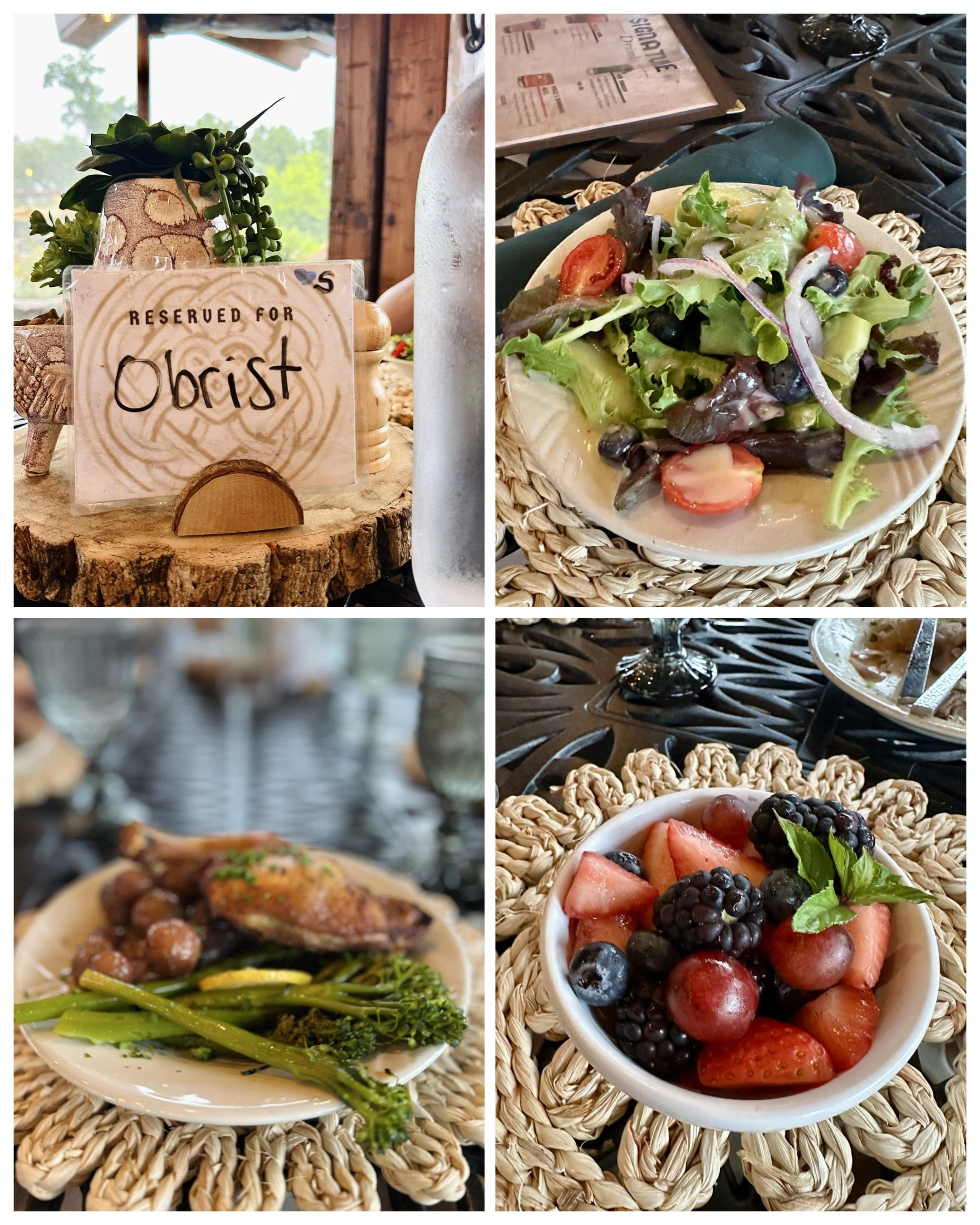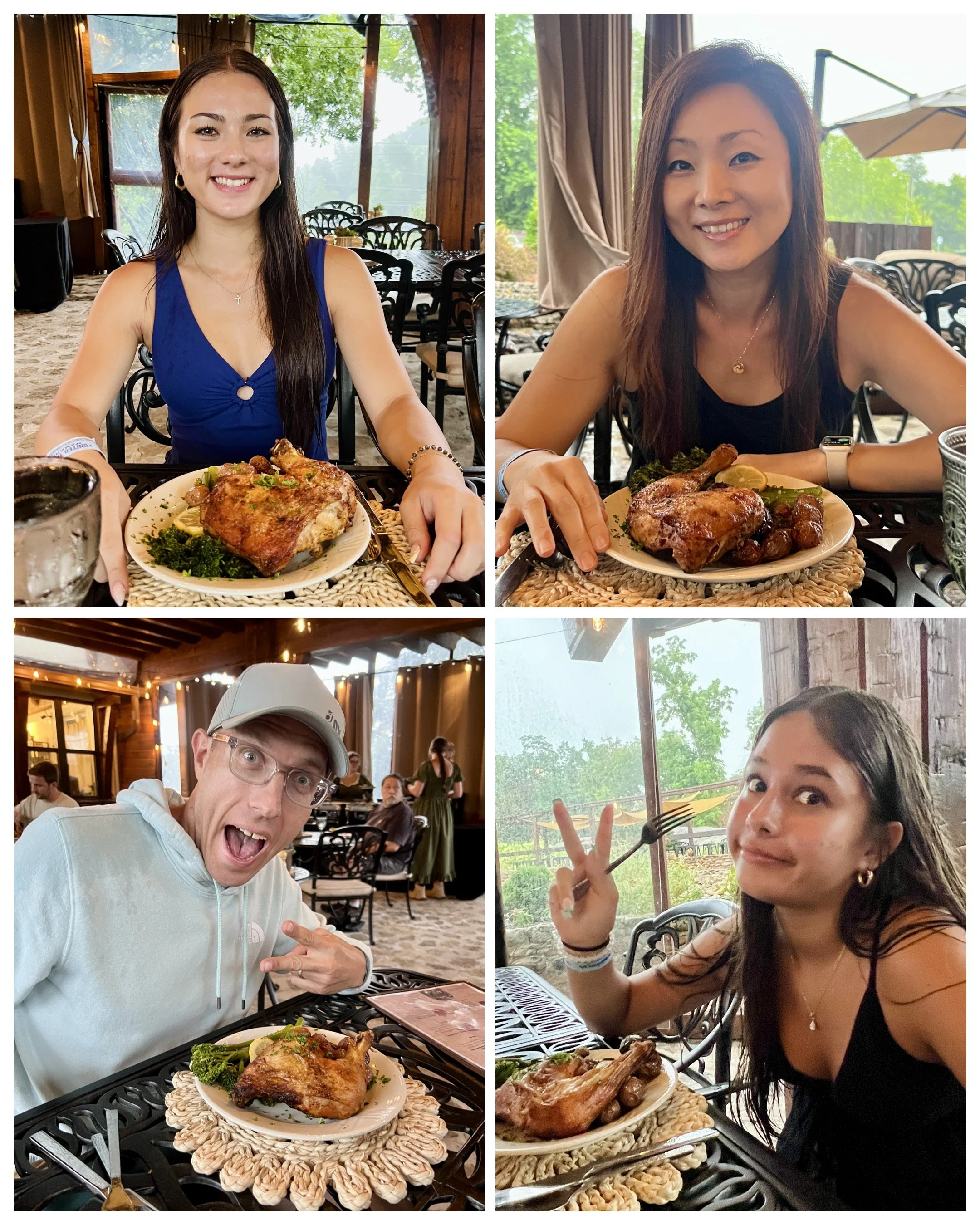 Got to sleep in a bit and spent the day at Anakeesta in Gatlinburg. The day was incredibly fun, but also incredibly HOT! We came back late afternoon to chill and freshen up for dinner reservations that we had at Ancient Lore Village. When we booked, they asked if we had any diet restrictions (which we do!), so it was so nice to just go there on time at 7pm and everything was ready! (Please note that reservations for dinner have to be made.) Salads were already out…. we just had to find our table with our name on it and that was it. It was so time efficient, so I appreciated that very much. My pet peeve at a restaurant is the long wait, so I was happy because I can get “hangry” very quickly. :) It was POURING, so we all had a very memorable walk from our lodge to the main area for dinner. We all laughed about it (thank God), so that’s why we look wet in the photos below. hehe
